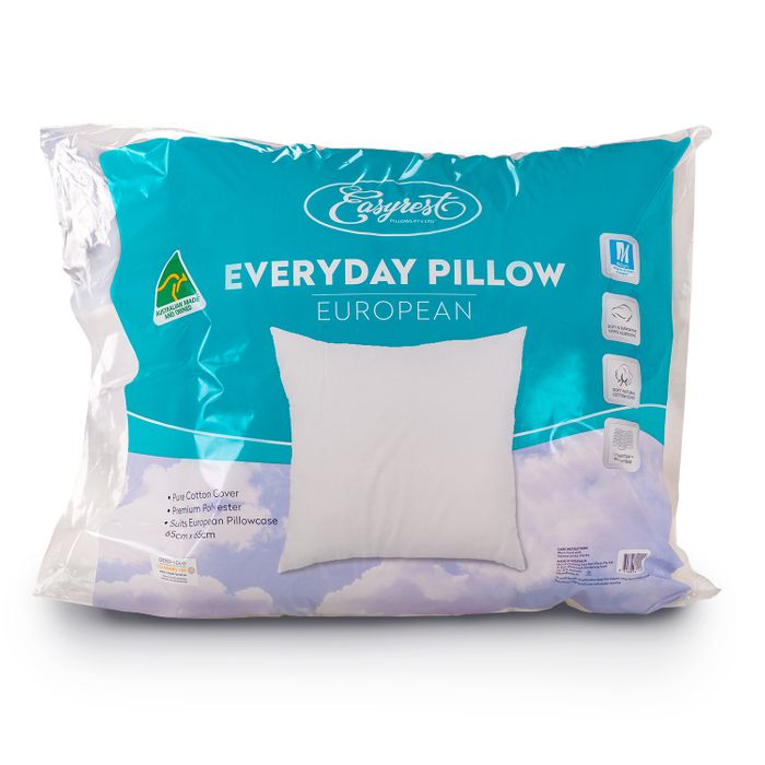The Everyday European pillow offers soft to medium support. Pure cotton cover filled with premium hollow polyester for lasting resilience, support and comfort. Perfect for extra back support or for decorative purposes.