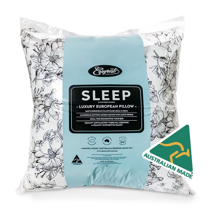 The SLEEP range of pillows has been designed for the discerning customer looking for that touch of luxury. Cotton sateen with a square check pattern and satin piping, this range has the ultimate blends of fibre fill for all types of sleepers. The range includes; Dual Support (for Side Sleepers or those who prefer a firmer feel), Down Alternative (for those who love the sumptuous down like feel without feathers), Twinpack (Gusseted medium pillows for back and side sleepers) and the Luxury European pillow that offers medium support. This European pillow will perfectly fill out your 65x65cm European pillowcase. For more information on this NEW range click here.