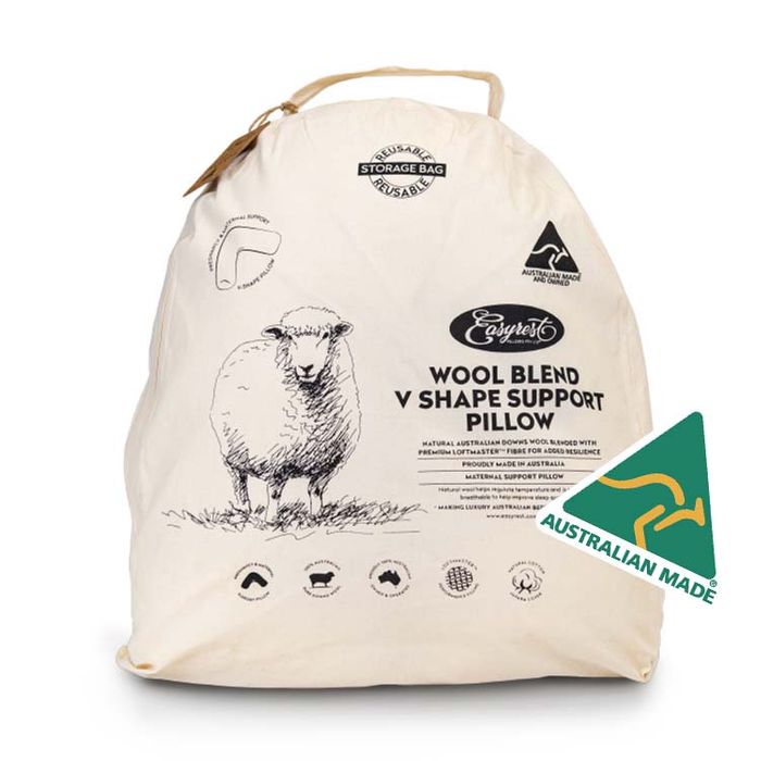 The natural support, breathability and temperature balancing properties of Pure New Australian Wool combined with the long life and resilience of Hollow Polyester fibre for added support of the head and neck. Generous fill for extra support during pregnancy and nursing.