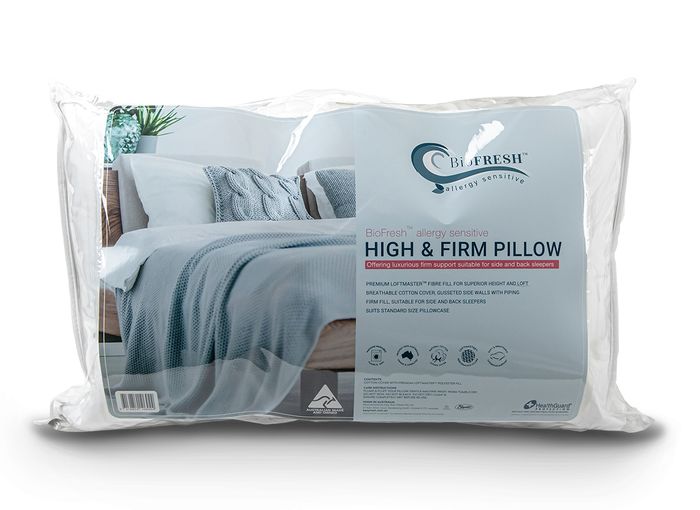 Bio Fresh High and Firm pillow offers firm support which is suitable for side and back sleepers. This pillow is a true High and Firm pillow. Premium performance filling for superior loft and height. The fibre is breathable and resilient, keeping is shape even after extended use.